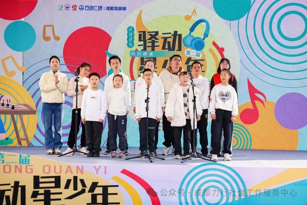 12月7日,冬阳和煦,洒落在龙泉驿区万达广场的每一个角落。由2024年成都市社会组织发展专项基金支持、成都力行社会工作服务中心承办的“心星闪耀·童声飞扬”——“艺彩童年”星光合唱队外出表演活动在此温暖开展。10名特殊儿童以纯净童声与艺术勇气,在2025年龙泉驿区第二届"驿动星少年"颁奖暨获奖作品展演活动中,为200余名观众献上了一场直抵心灵的视听盛宴,用歌声传递社会关爱,以表演点亮成长希望。