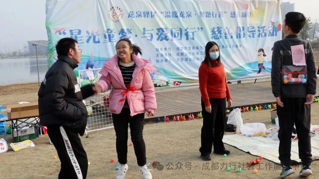 冬日的东安湖公园暖意融融,爱心与欢笑在此交织。2026年1月10日,由成都市龙泉驿区民政局、龙泉驿区慈善会指导,成都力行社会工作服务中心主办的“星光童梦・与爱同行”慈善倡导活动在东安湖公园知北营地温情启幕。活动以艺术为桥梁、以爱心为纽带,不仅为心智障碍儿童(以下简称“星星”)搭建了展示自我的舞台,更吸引了众多普通儿童和社区居民参与,在互动中增进了理解,凝聚了力量,传递出希望,共同绘制出一幅关爱特殊儿童的温暖画卷。