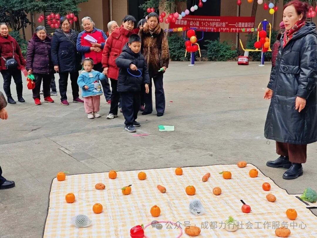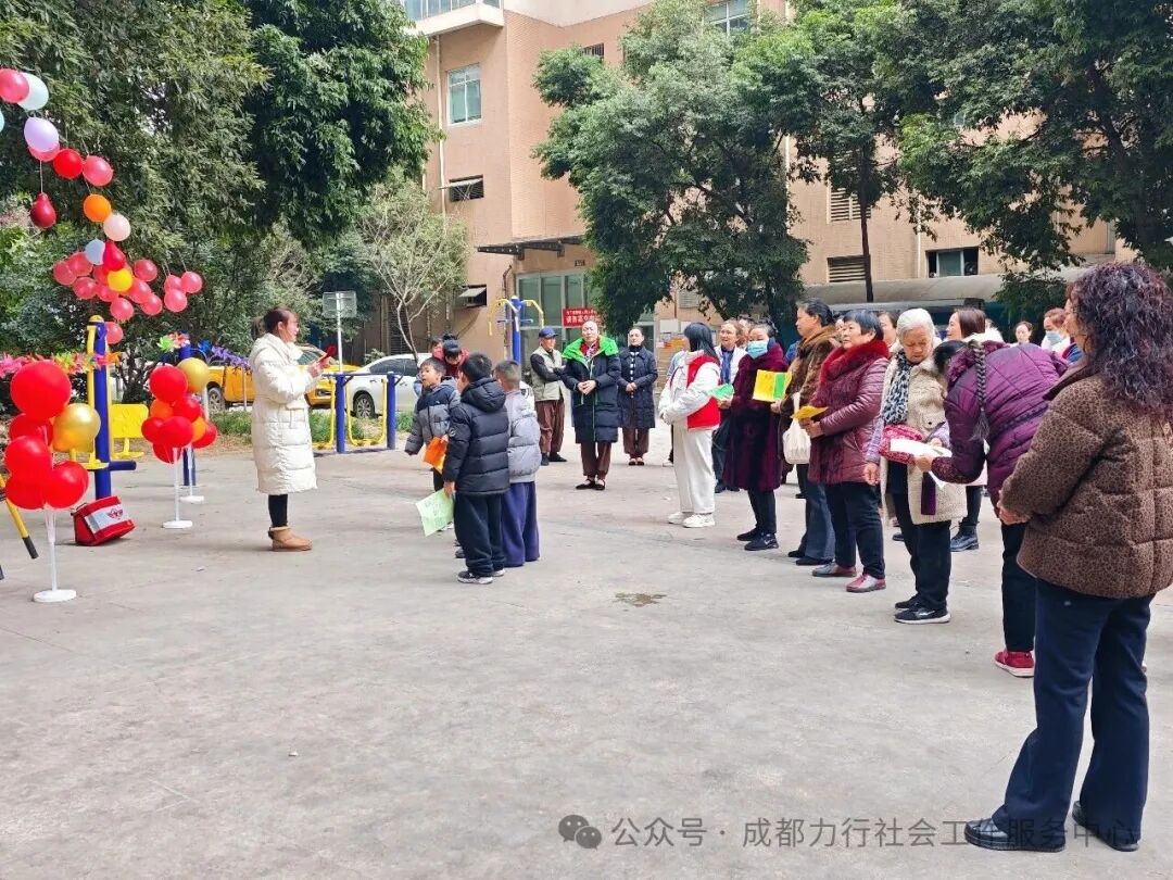 岁序更替,华章日新。在辞旧迎新之际,为营造温馨和谐的社区氛围,促进邻里情感交流,2026年1月27日上午,在崇德社区2025年城乡社区发展治理专项保障资金项目支持下,由崇德社区主办、成都力行社会工作服务中心承办的“心暖邻里间·欢喜迎新年”新春互动嘉年华活动在怡和新城E4区广场火热举行。活动以心理健康科普为核心,融合传统新春游园形式,吸引了80余位居民积极参与,共同绘就了一幅暖意融融的社区画卷。