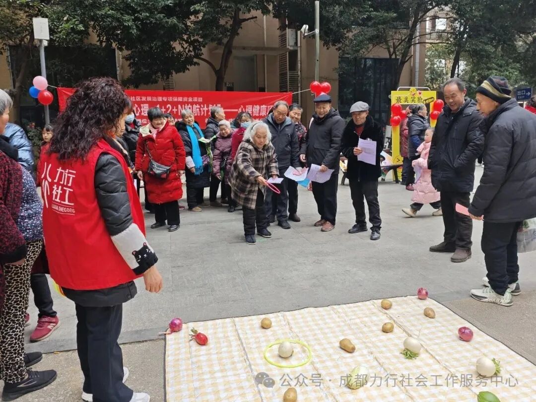 2026年1月29日上午,崇德社区怡和新城E2区广场人头攒动、欢声笑语不断。在崇德社区2025年城乡社区发展治理专项保障资金项目支持下,由崇德社区主办、成都力行社会工作服务中心承办的“心光同行·快乐启程”心理健康主题游园会在此热闹举行。,活动以趣味互动为载体,将心理健康知识融入游戏体验,吸引100余位居民热情参与,共同开启了一场温暖的心灵探索之旅。
